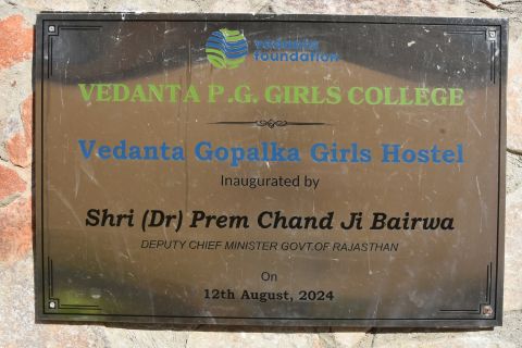 Vedanta Gopalka Girls' Hostel was officially inaugurated by Honourable Deputy Chief Minister Rajasthan "Shree Premchand Ji Bairwa". The ceremony was further honored by the presence of Prof. (Dr.) Anil Kumar Ray, Vice Chancellor of Pandit Deendayal Upadhyaya Shekhawati University, and MLA Khandela Mr. Subhash Meel. .